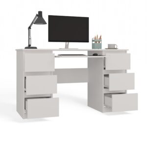 BIURKO ADA BIAŁE 125 Cm 4 Szuflady Szafka Półki Do Biura Pokoju Na Laptop