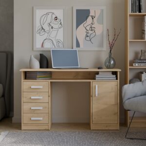 BIURKO ADA DĄB ARTISAN 125 Cm 4 Szuflady Szafka Półki Do Biura Pokoju Na Laptop