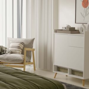 • Komoda COLIN Szafka 2 Drzwi 1 Szuflada Z Nóżkami BIAŁY